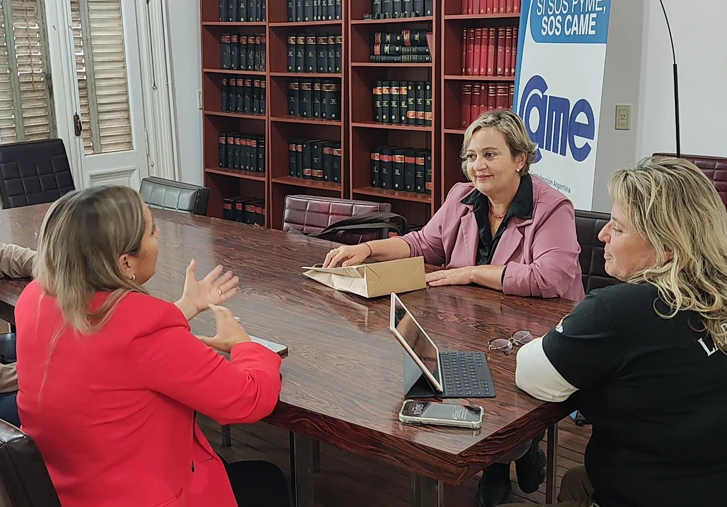 La presidenta del Honorable Concejo Deliberante, Mariana San Martín y el director de Producción, Martín Boragno, estuvieron en la sede de la Cámara Económica Mercedina, donde mantuvieron un encuentro con Natalia Facciolo y Fernanda Pozzi, dos emprendedoras mercedinas que participarán de una misión de negocios internacional en Francia, representando a la Argentina.