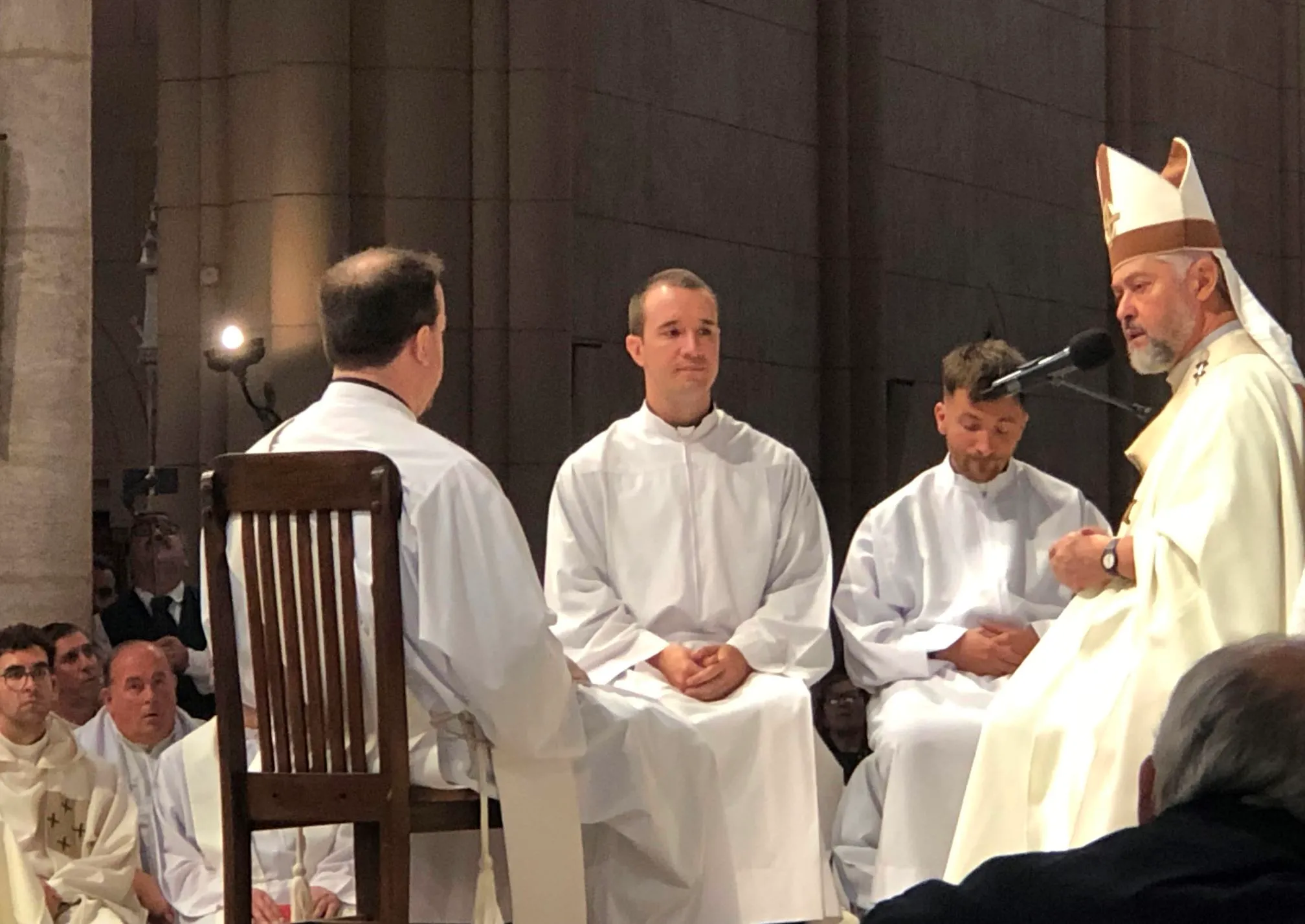 El arzobispo también se dirigió a los ordenandos e indicó que el ministerio implica una entrega total: «Van a decirle hoy a Dios y a toda la Iglesia que quieren entregar la vida», expresó. Asimismo, destacó que el diaconado y el sacerdocio suponen una transformación profunda, al configurar la vida de quienes los reciben con la de Cristo.