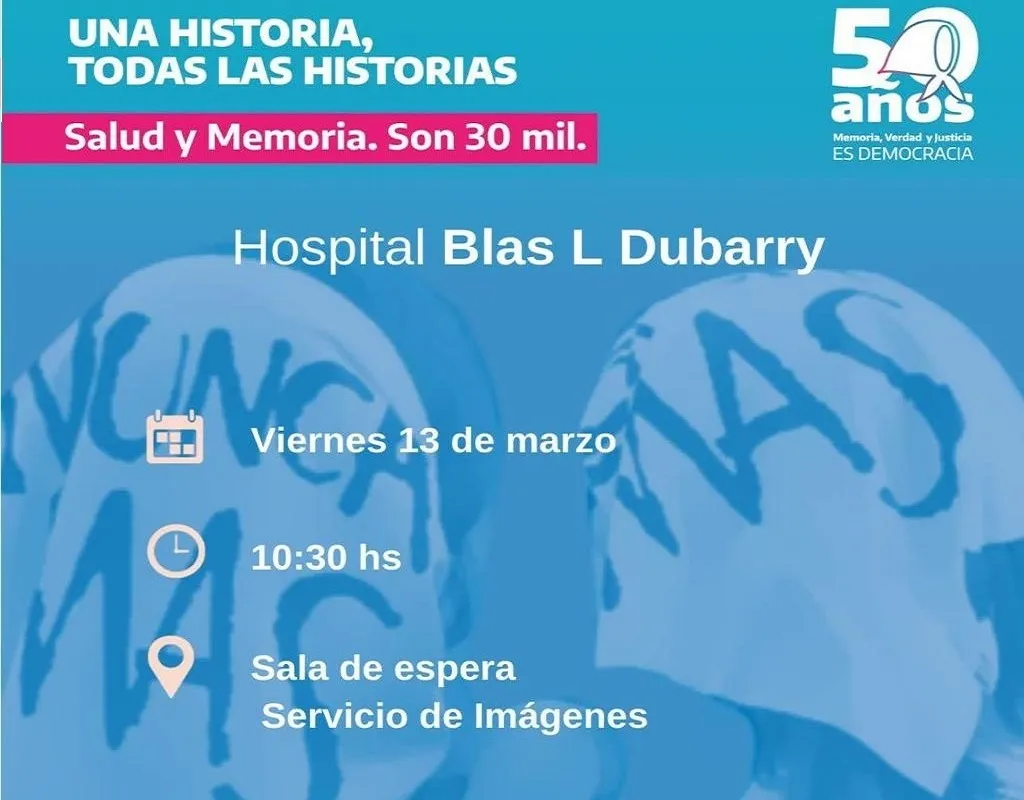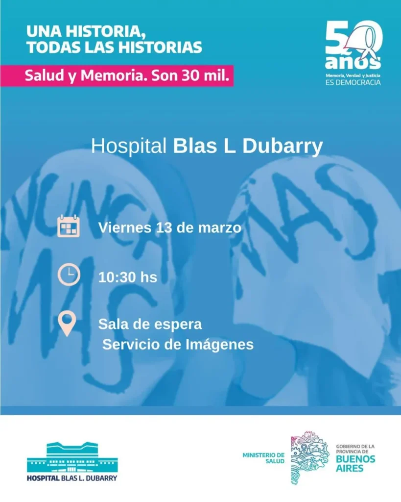 A 50 años del golpe de Estado cívico militar del 24 de marzo de 1976, el Hospital Blas L. Dubarry realizará una jornada conmemorativa en el marco del “Día Nacional de la Memoria por la Verdad y la Justicia”.