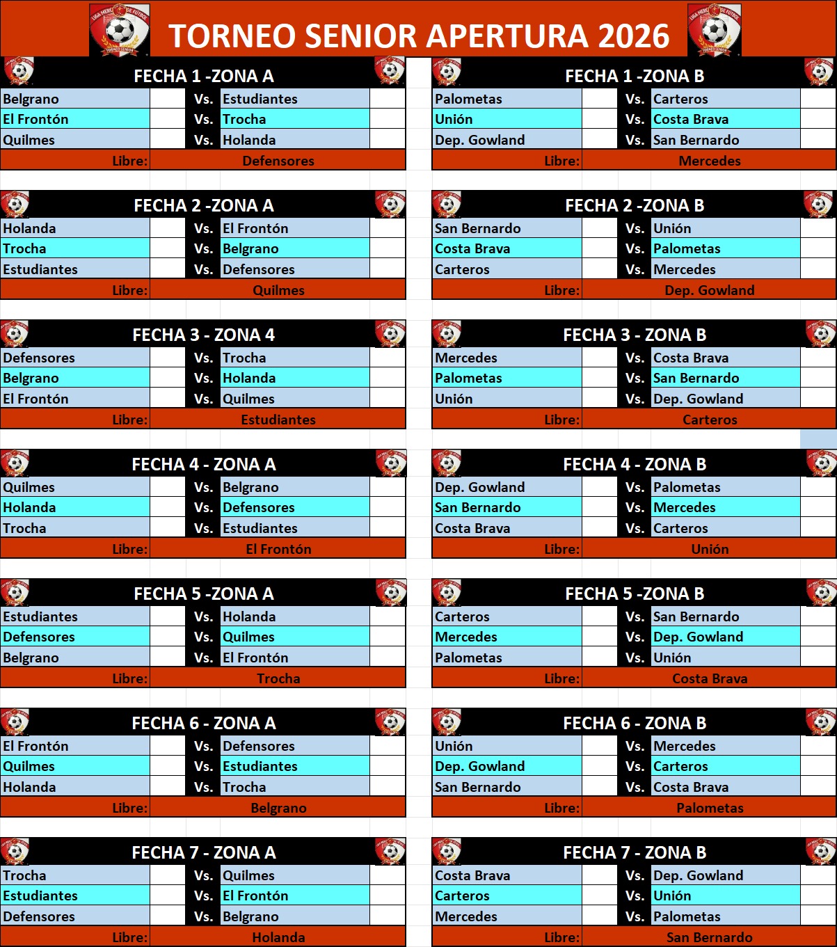 En cuanto a la confección de la zona se definió que los últimos finalistas -El Frontón y Deportivo Gowland- fueran los cabezas de grupos, a la vez que también se dividieron en sorteo otras parejas, de acuerdo a resultados del último certamen.