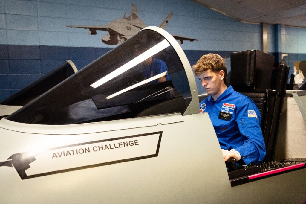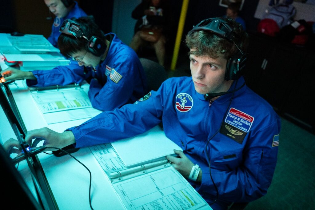 Entre los ejercicios, los estudiantes entrenaron como astronautas usando el Multi-Axis Trainer, que simula un viaje espacial turbulento, y el simulador conocido como la «silla 1/6», diseñado para experimentar la gravedad lunar.