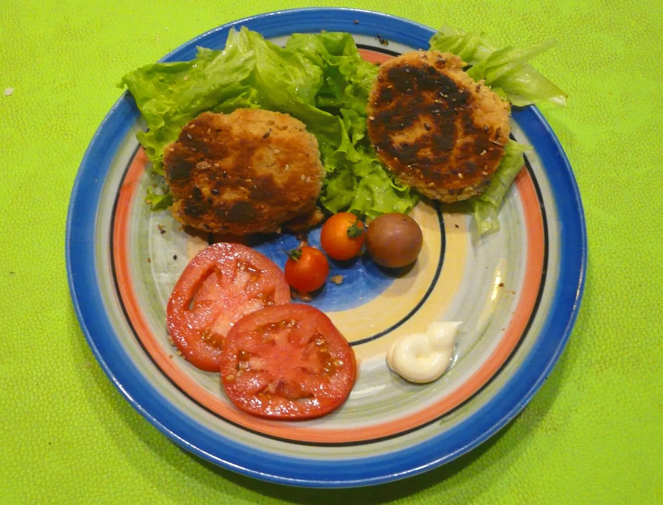 También se las puede hornear. Armar el sándwich untando el pan con mostaza, colocando el medallón y completar con las verduras.
