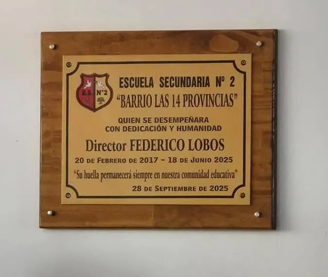 Un merecido homenaje al querido Federico Lobos en la Escuela Secundaria 2 de Suipacha, donde se colocó una placa en un acto muy emotivo y conmovedor junto a su familia. Ejerció la docencia con sabiduría, comprensión y don de gente; fue director de la Escuela Secundaria 2 y profesor en otras escuelas, muy querido por sus alumnos y colegas, muy participativo en las instituciones de la comunidad. Últimamente también formaba parte de la comisión de Sociedad Española como secretario. Se siente mucho su ausencia.