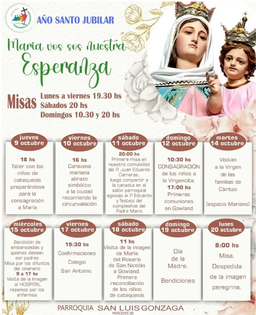 Desde la pasada semana, la Parroquia San Luis Gonzaga recibe la imagen de Nuestra Señora del Rosario de San Nicolás, la cual permanecerá hasta el próximo lunes 20 de octubre.