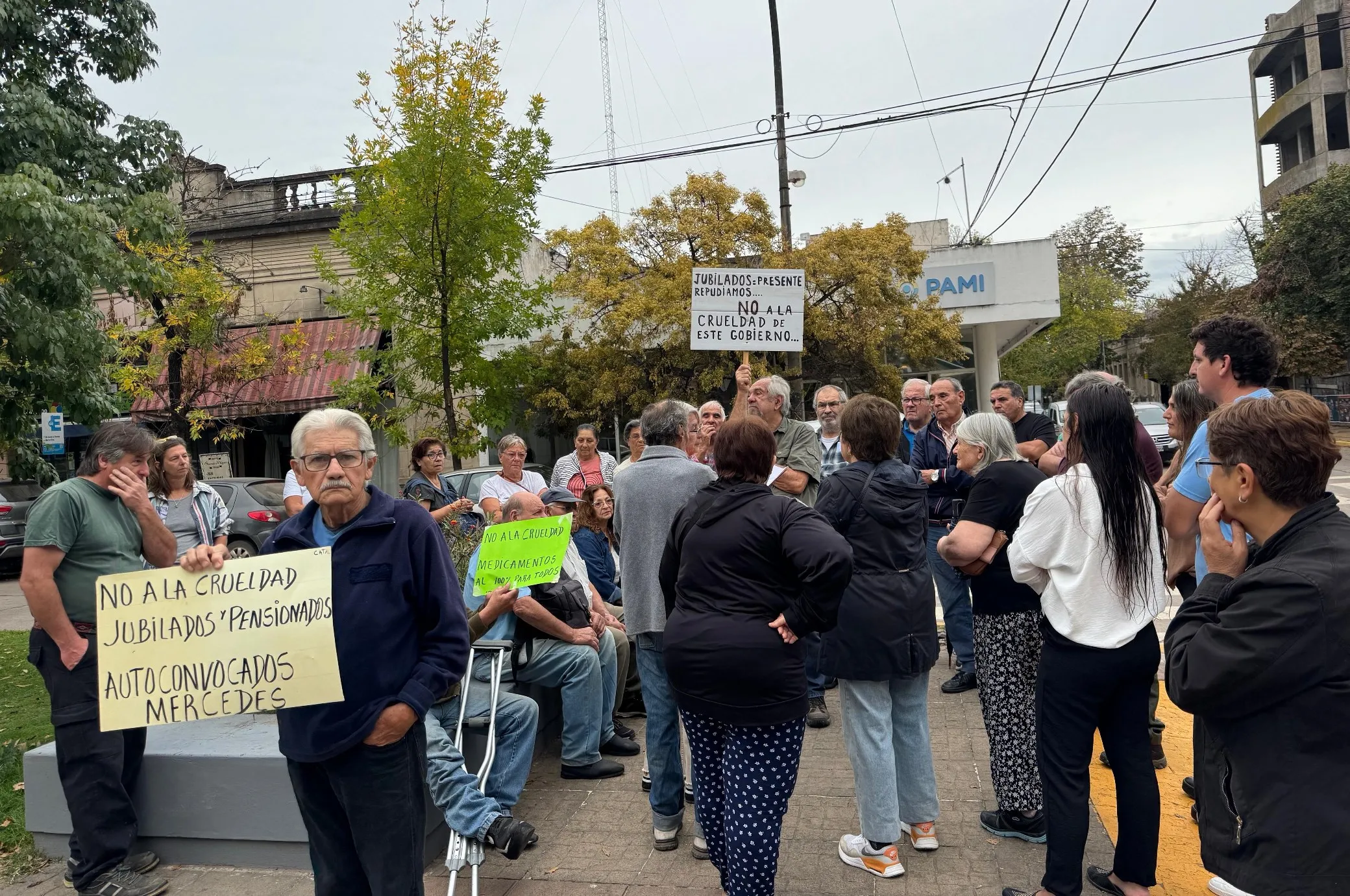 Jubilados y pensionados de Mercedes se movilizaron hacia las oficinas de la agencia de PAMI Mercedes, ubicadas en calle 25 y avenida 16, para expresar su preocupación ante la situación prestacional que se encuentran atravesando.
