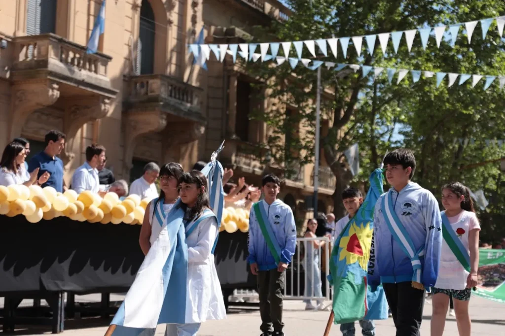 El desfile, acompañado musicalmente por la Banda de Gendarmería Nacional, contó con la participación de numerosos organismos que celebraban aniversarios destacados. Entre las instituciones educativas que desfilaron se encontraron la E.P. N° 28, que cumplió 75 años (junto al JIRIMM N° 4), el Jardín Maternal Girasoles, que celebró sus 25 años, y el Instituto San Benito, que conmemoró sus 25 años de nivel primario. También se destacó la Escuela Secundaria N° 1, que festejó 40 años, y el Colegio Nuestra Señora de la Misericordia, que si bien cumplió 145 años, conmemoró los 150 años de la llegada de las Hijas de Nuestra Señora de la Misericordia a la ciudad.