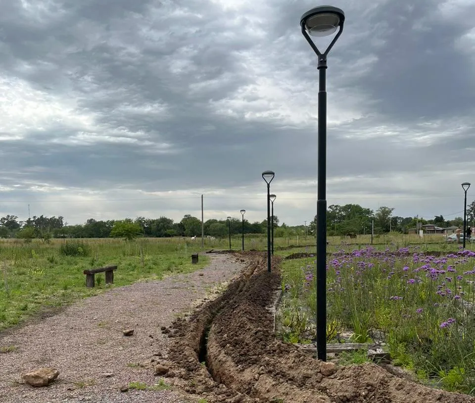 En el predio ubicado en el Barrio El Milagro, se realizó el zanjeo para la instalación del cableado de la iluminación y tendido eléctrico del predio que será iluminado por 24 columnas y tecnología LED de última generación.