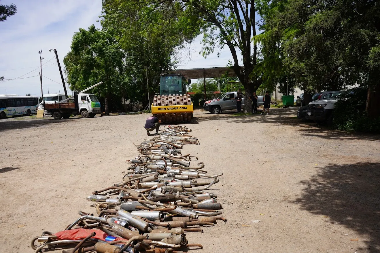 La destrucción se efectuó con una maquinaria de gran porte que al pasar por sobre los mismos, quedan absolutamente inutilizables. Son los típicos escapes que generan ruidos molestos, que son ilegales y, como suele decirse en la jerga, sirven para “hacer cortes”, generando un sonido perturbador.